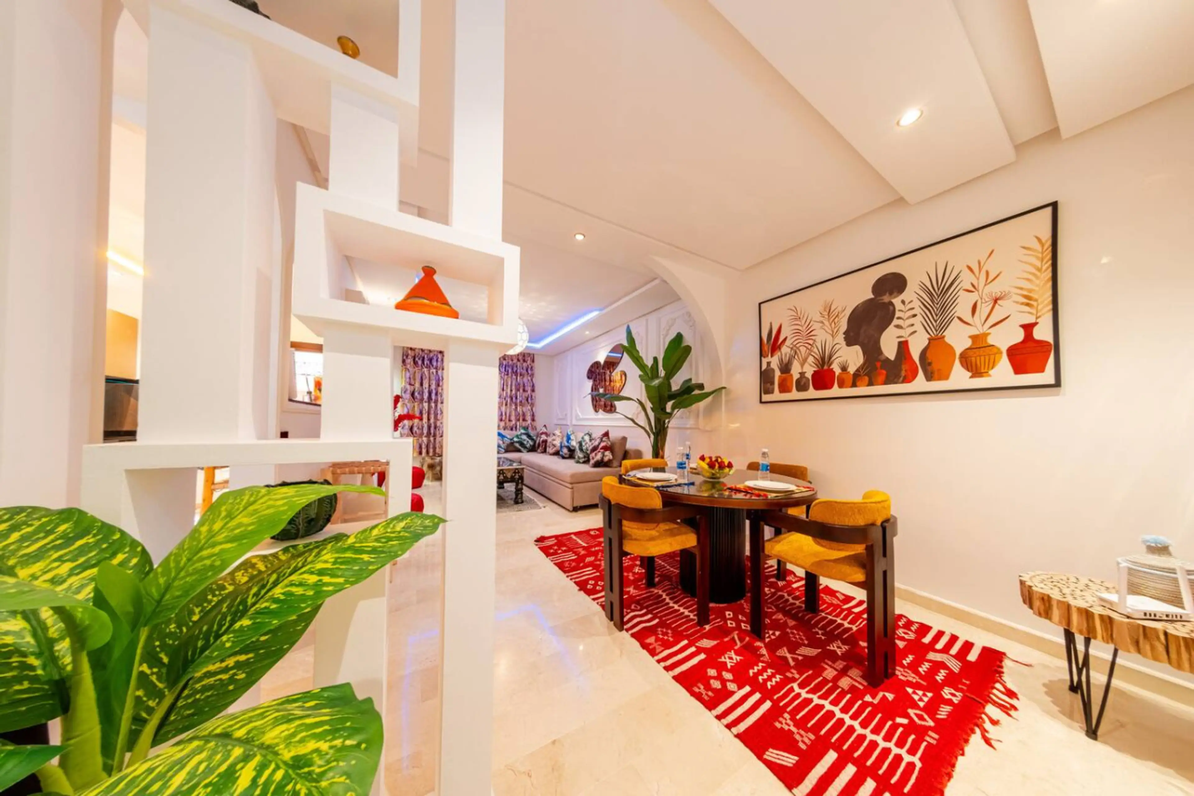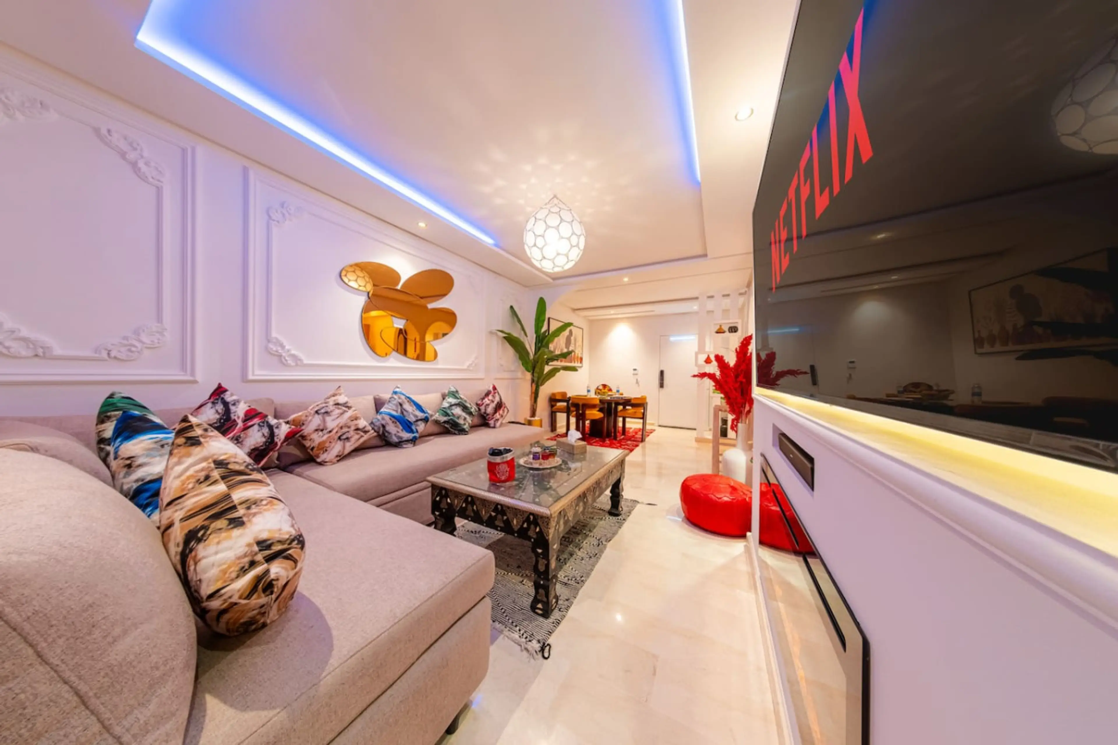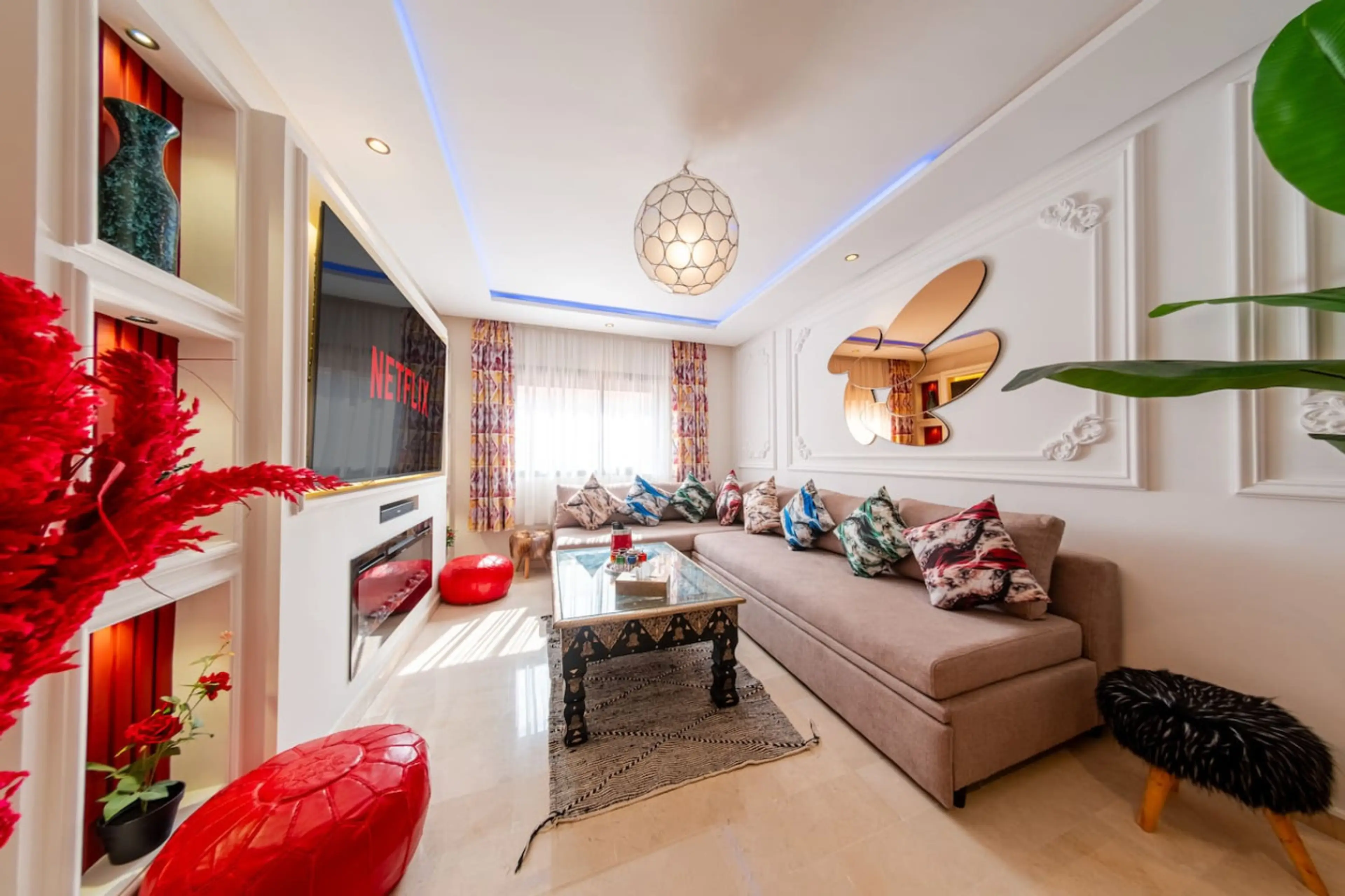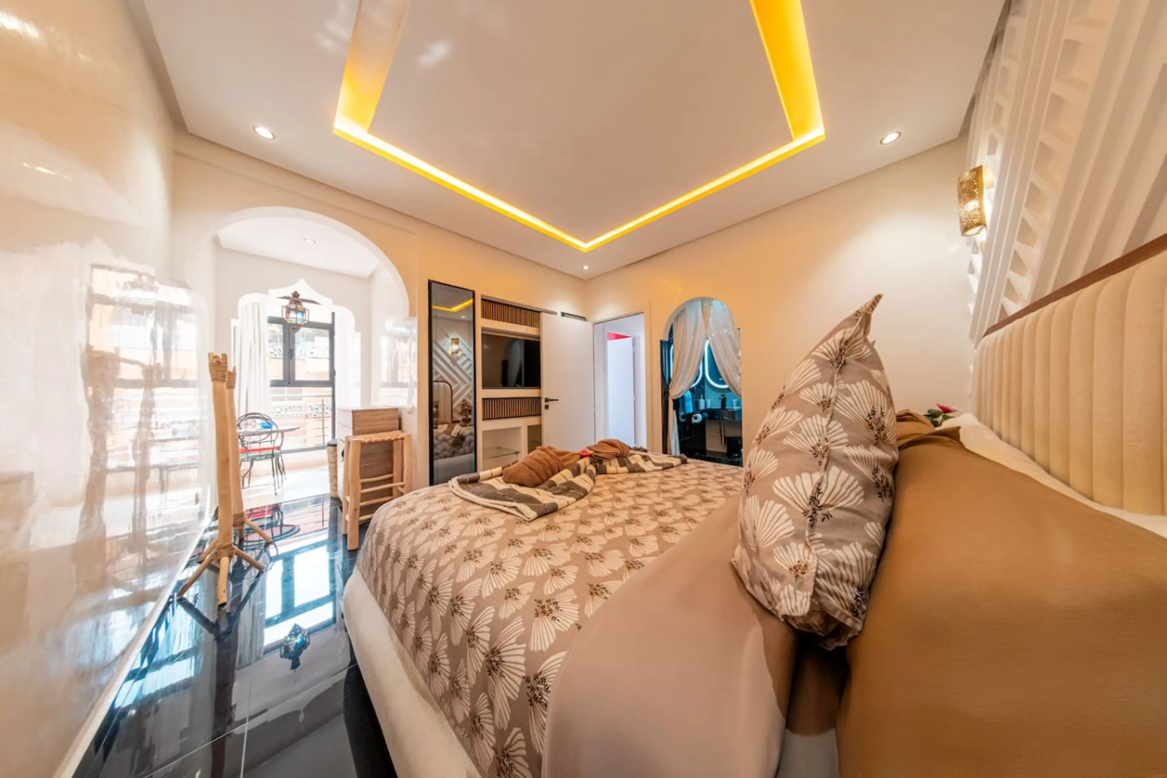 Discover this beautiful, modern and fully equipped apartment, perfect for a comfortable stay in Marrakech. Ideally located just 3 minutes from Carré Eden, you enjoy a strategic location close to everything while staying in a calm, secure and well-maintained residence. Perfect for families, couples ...