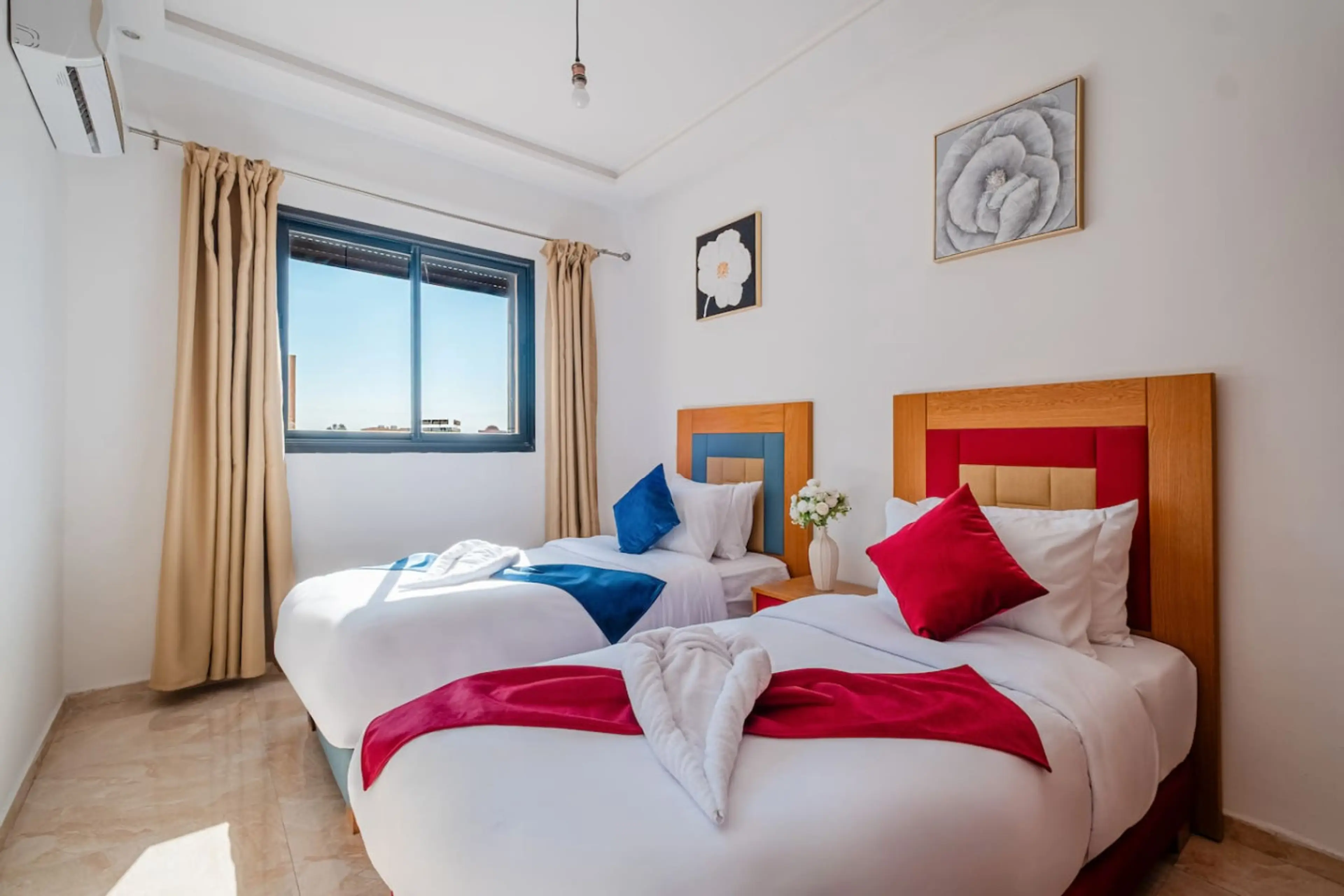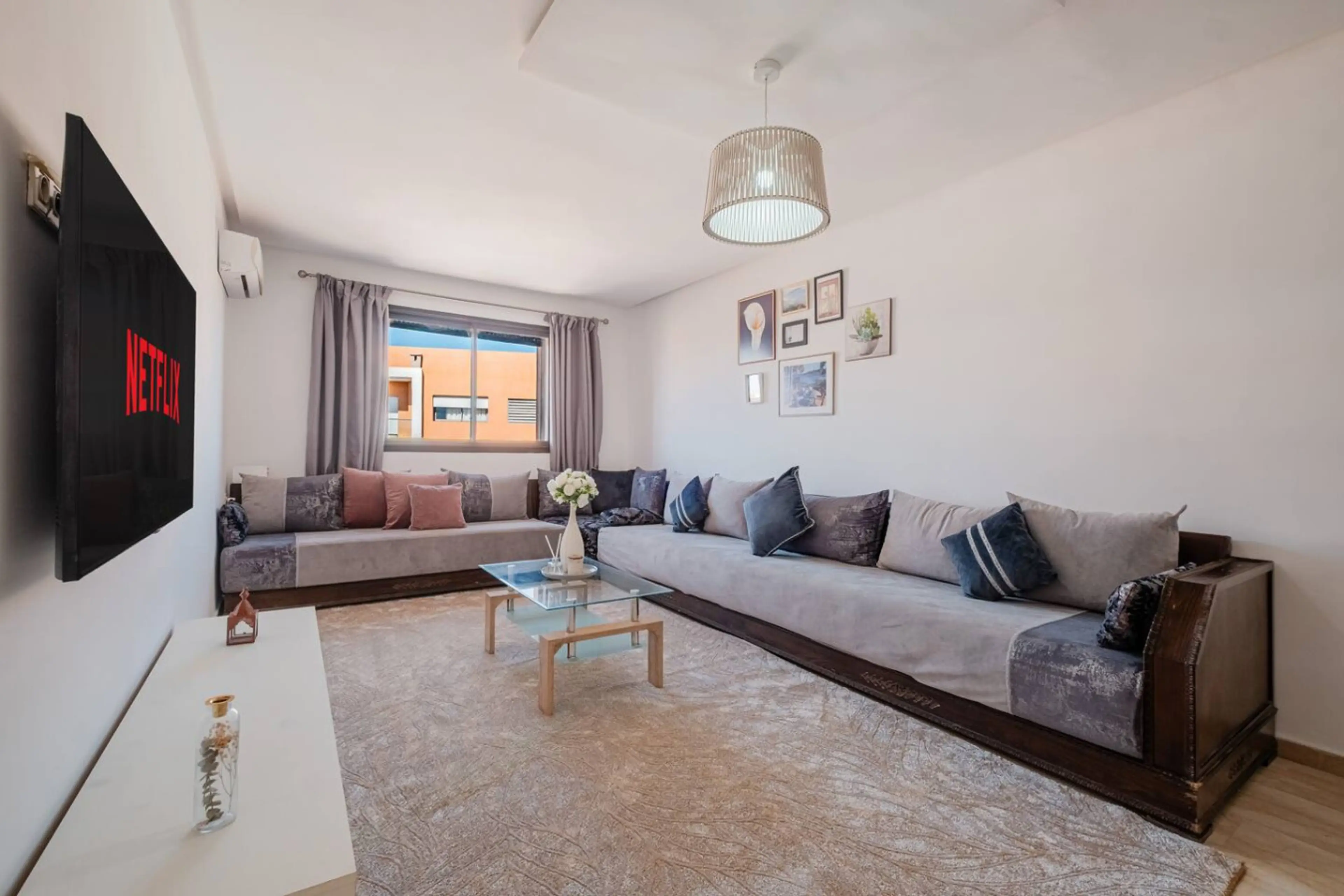 Welcome to your stylish 2BR stay in Hivernage, Marrakech. Enjoy a fully equipped kitchen, balcony, fast Wi-Fi, Smart TV, AC, and private underground parking. Relax in the indoor swimming pool (level -1) and feel secure with 24/7 building security. All of this within walking distance to the best café...